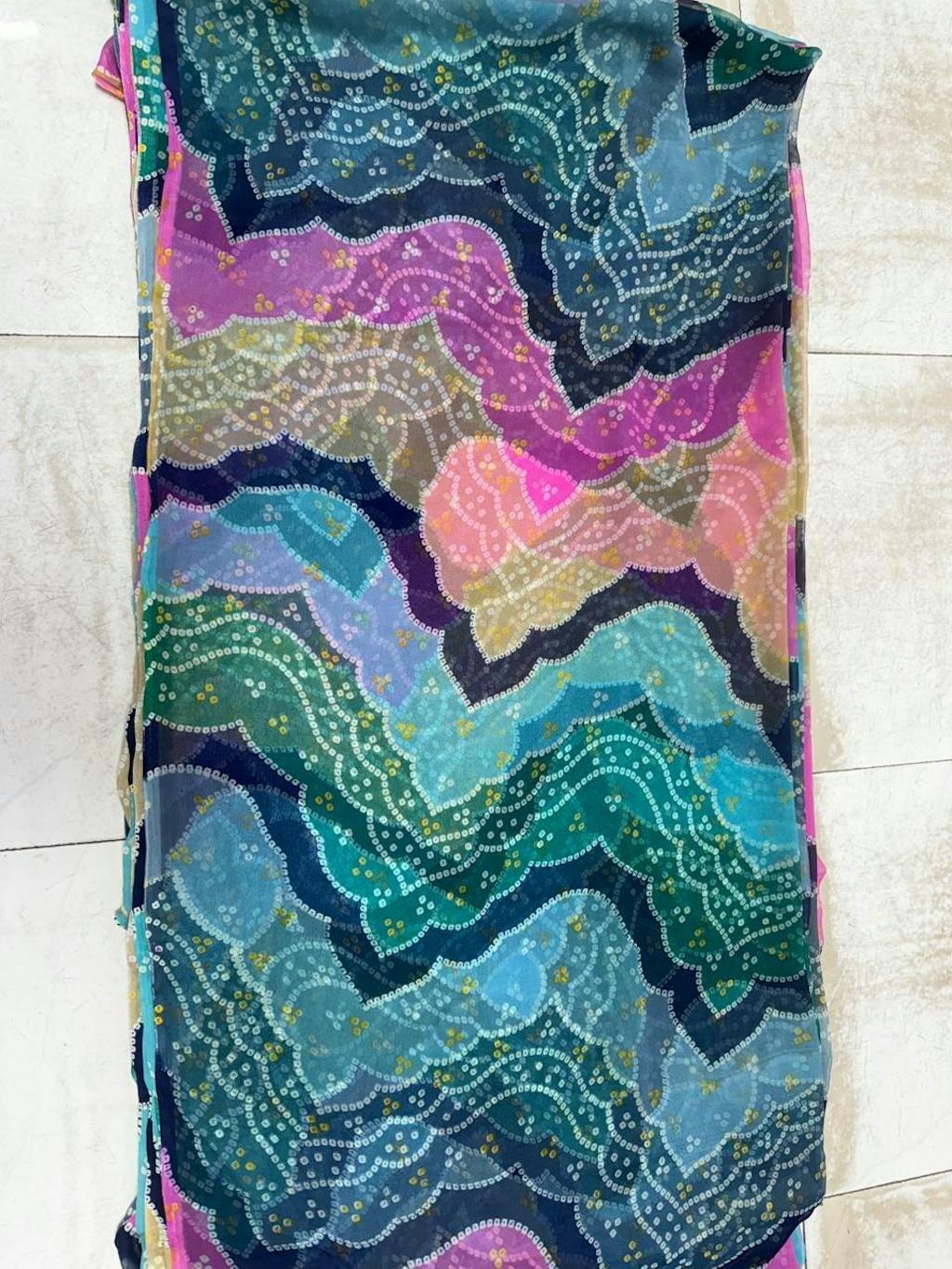 Such a beautiful fall saree with amazing Bandhani prints