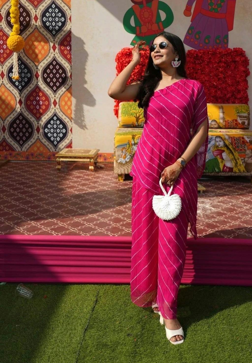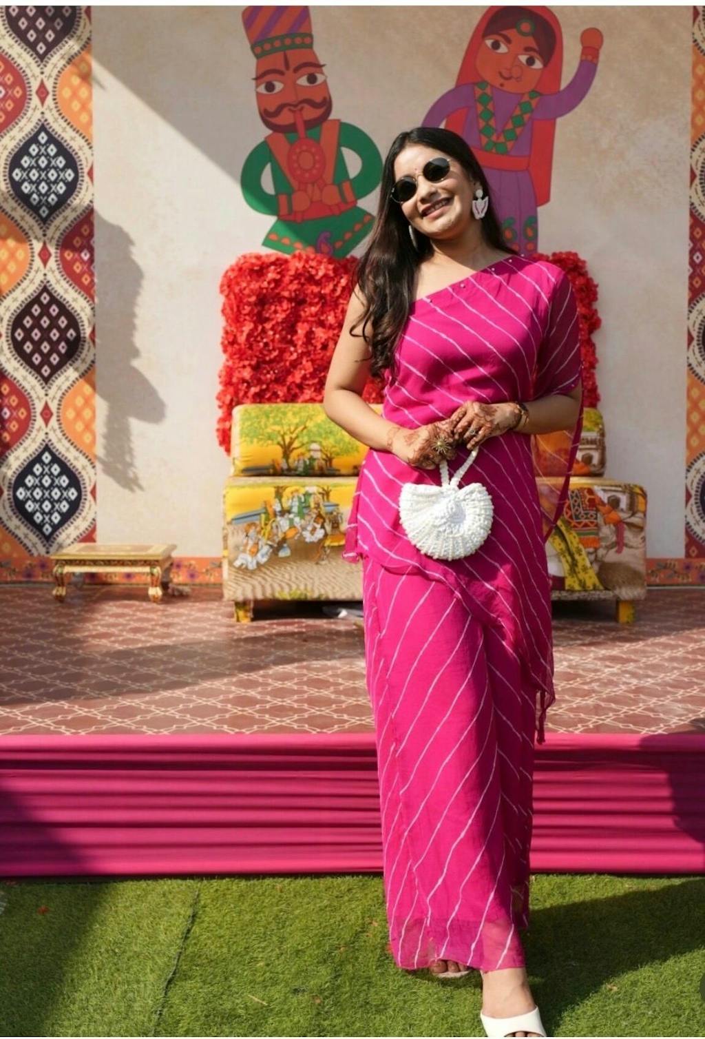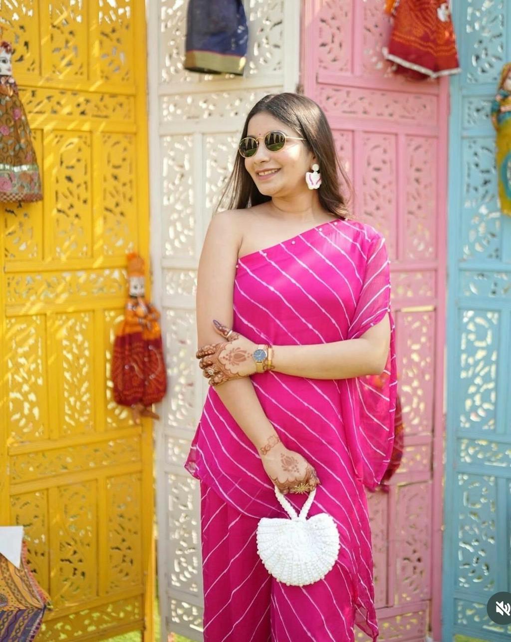 Most beautiful and comfy outfit 💕 giving amazing traditional vibes combination of indo-western with leheriya prints.
